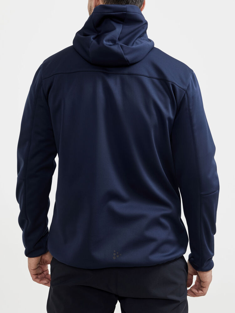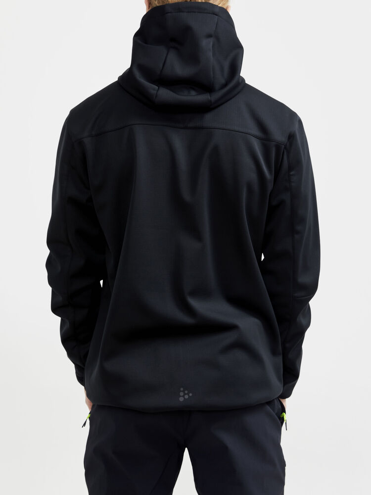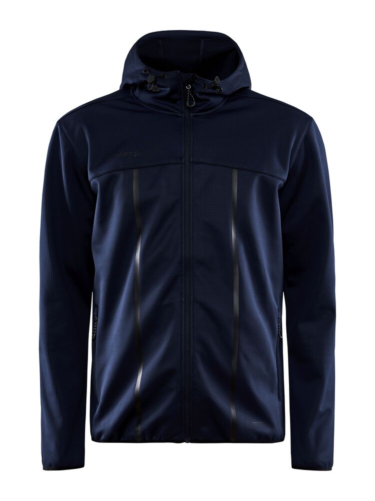 Avansert softshelljakke til herre i resirkulert og vindbeskyttende materiale med myk børstet innside, god stretch og teipede detaljer. Jakken har to sidelommer med glidelås, innerlomme med glidelås, justerbar hette og elastisk strikk i nederkant og i ermet.