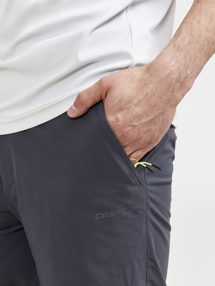 Avanserte friluftsshorts til herre av materiale med 4-veis-stretch og myk innside for optimal bevegelsesfrihet og komfort. Shortsen har justerbar midje, beltehemper og mange glidelåslommer.