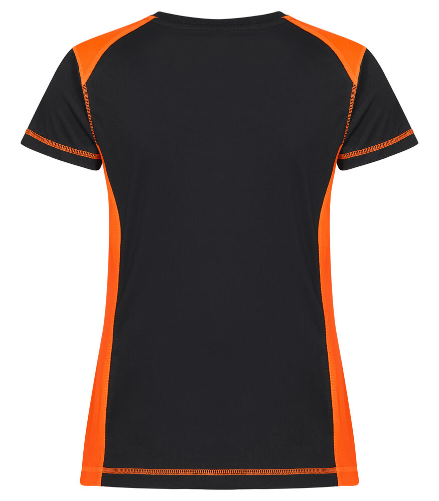 Kontrastfarget T-skjorte som gir økt synlighet. Ribb, kontrastsøm og elastan i kragen. Polyesteren som er brukt i t-skjorten er resirkulert. Forsterket nakketeip og en lett avtagbar etikett for rebranding.