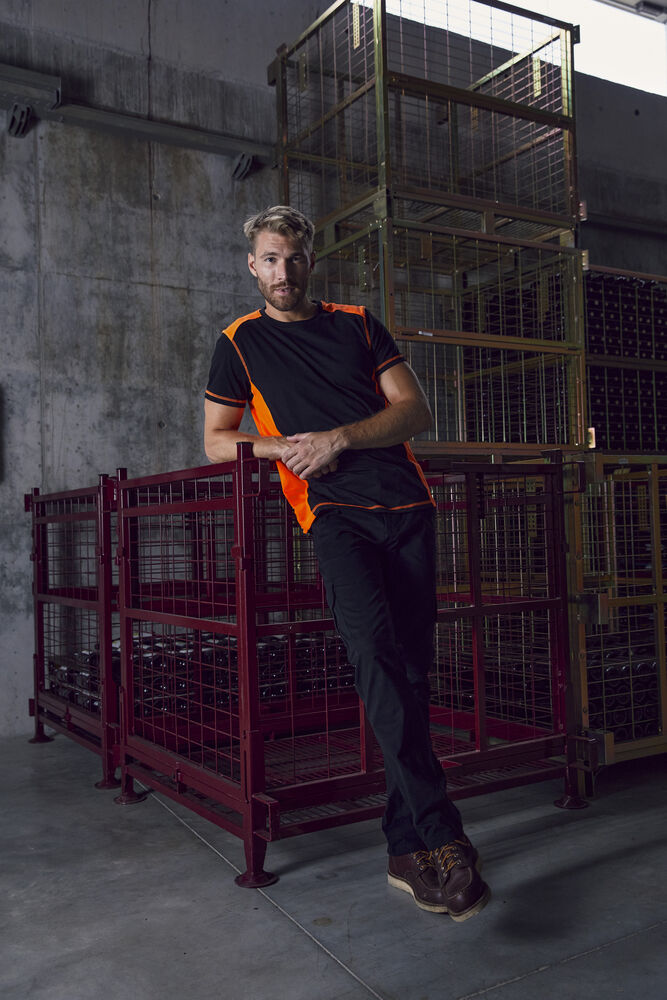 Kontrastfarget T-skjorte som gir økt synlighet. Ribb, kontrastsøm og elastan i kragen. Polyesteren som er brukt i t-skjorten er resirkulert. Forsterket nakketeip og en lett avtagbar etikett for rebranding.