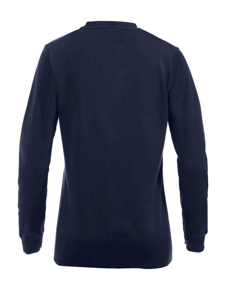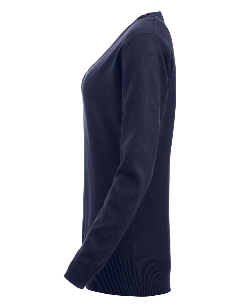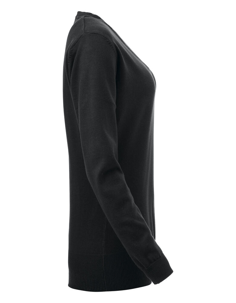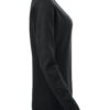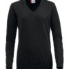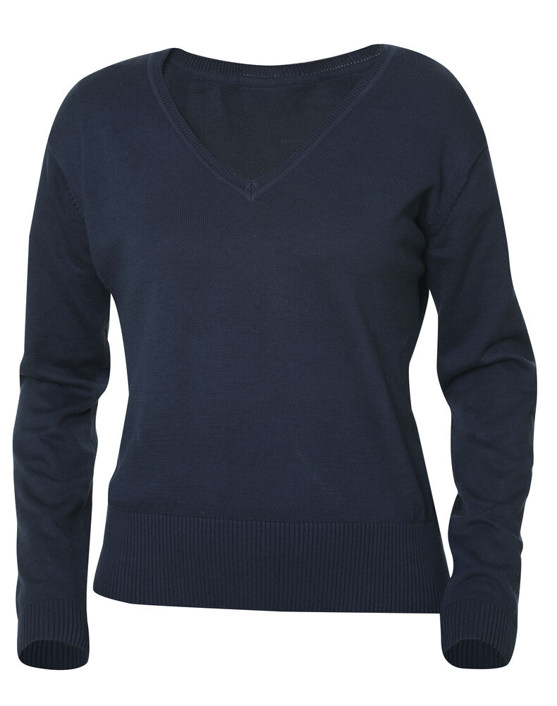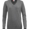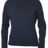 Finstrikket genser med V-hals ,"fully fashioned", silikon behandlet for mykere følelse. Elastan i mansjett og i nederkant.