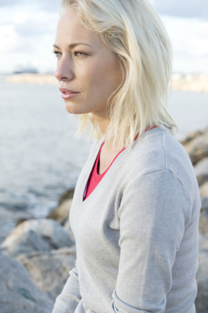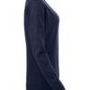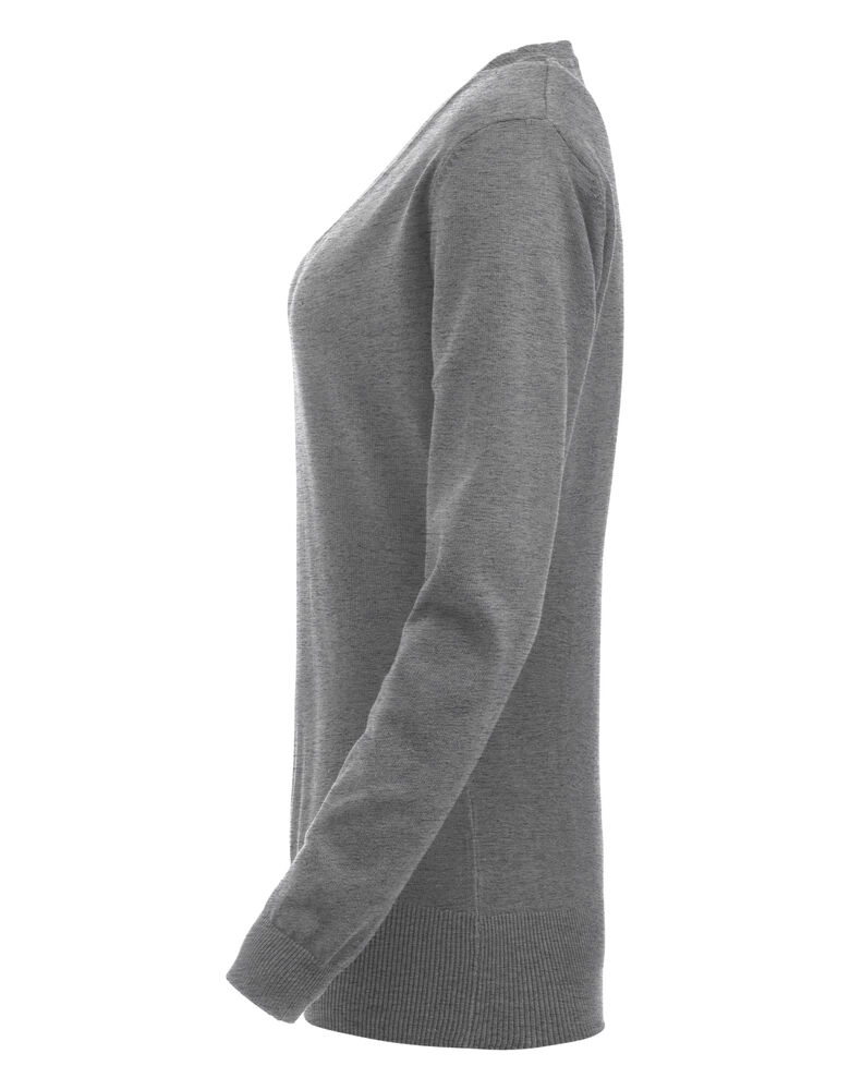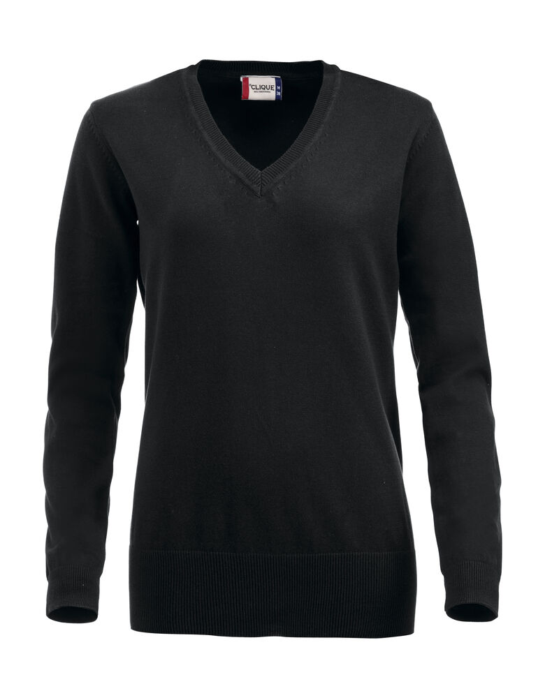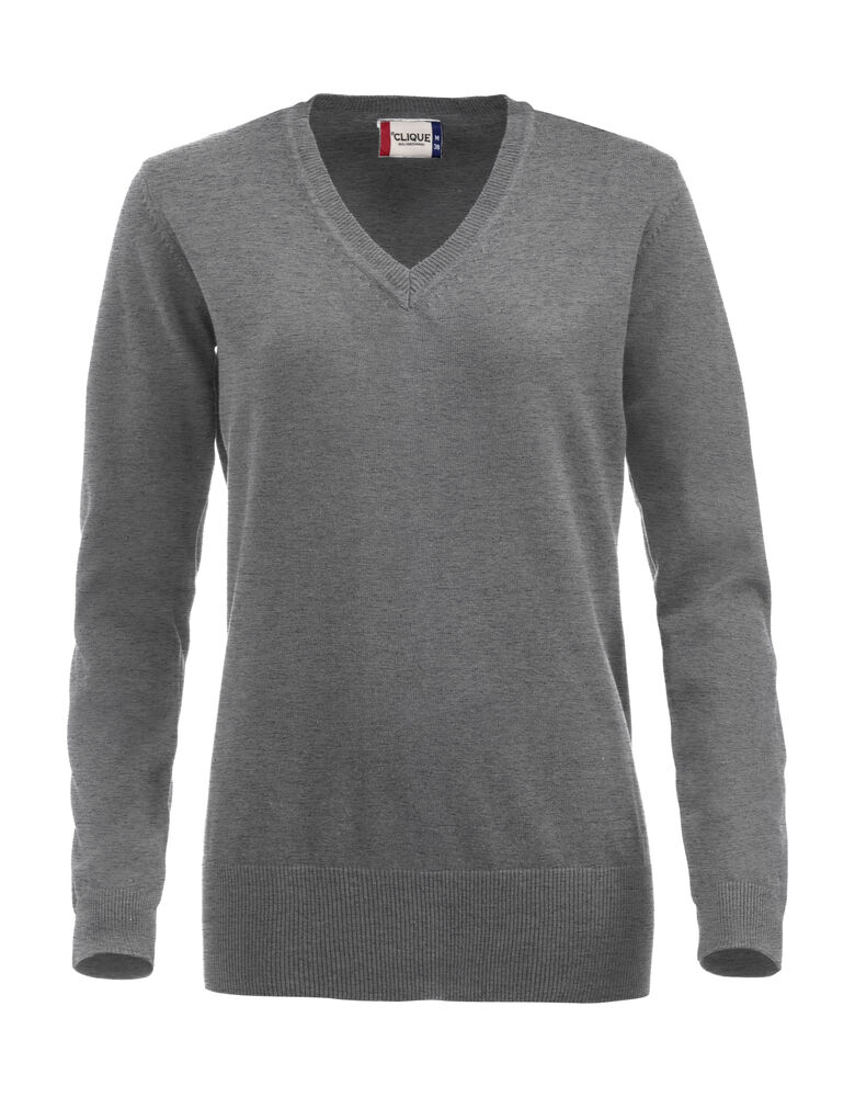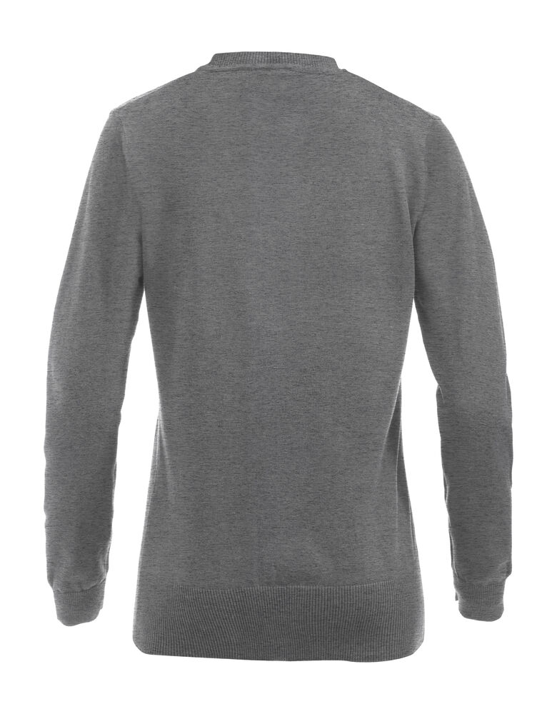 Finstrikket genser med V-hals ,"fully fashioned", silikon behandlet for mykere følelse. Elastan i mansjett og i nederkant.