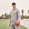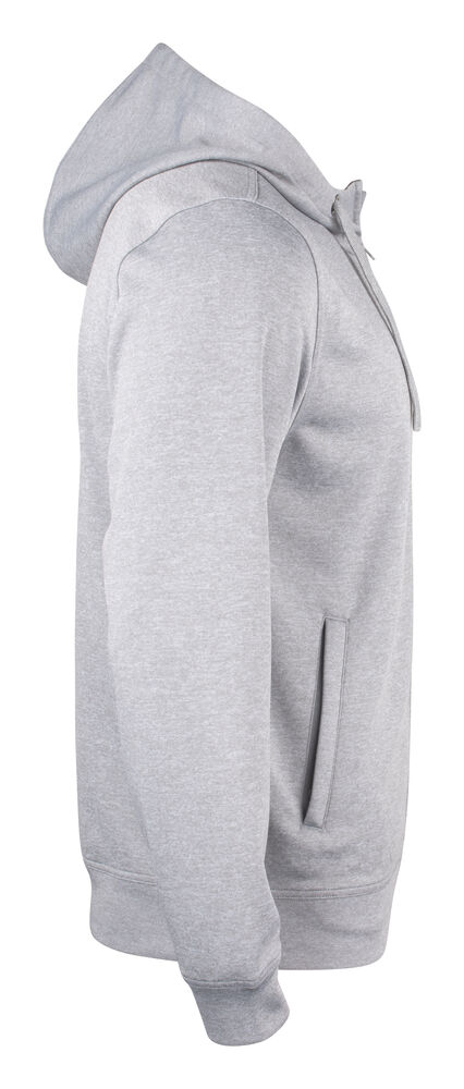 Hettejakke med ton-i-ton glidelås. To sidelommer med glidelås og en glidelåslomme på ermet. Snor i hette, herringbone nakkebånd og ribb i nedekant og i ermavslutning. Tilpasset for hodetelefoner. Spun dyed. Avtagbar etikett i nakken.
