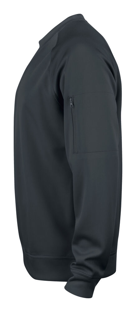 Sweatshirt i unisexmodell. Lomme på ermet med ton i ton glidelås. Herringbone nakkebånd og ribb i nedekant og ermavslutning. Spun dyed. Avtagbar etikett i nakken.