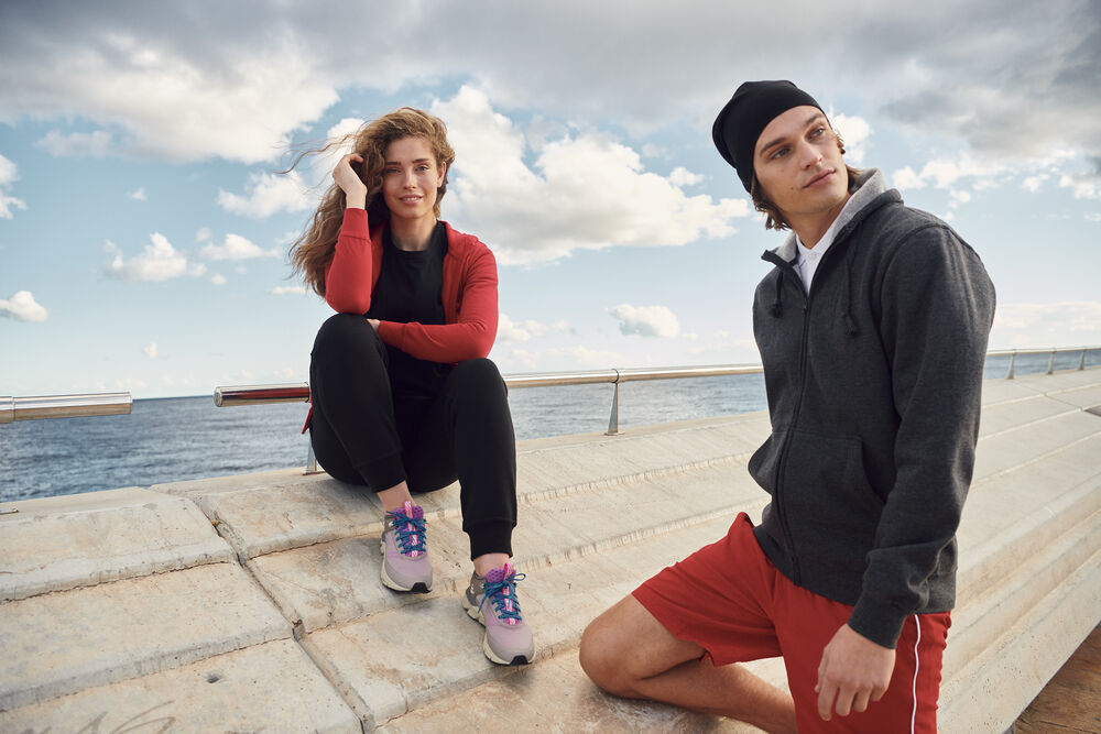 Hettejakke med ton-i-ton glidelås, to lommer i front og flatt snøre. Mykt stoff som er egnet for intensiv vasking med anti-pilling-finish. Elastisk ribb i ermet og nederkant. Tilpasset for hodetelefoner.