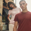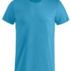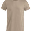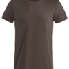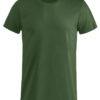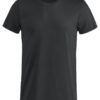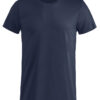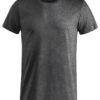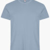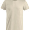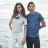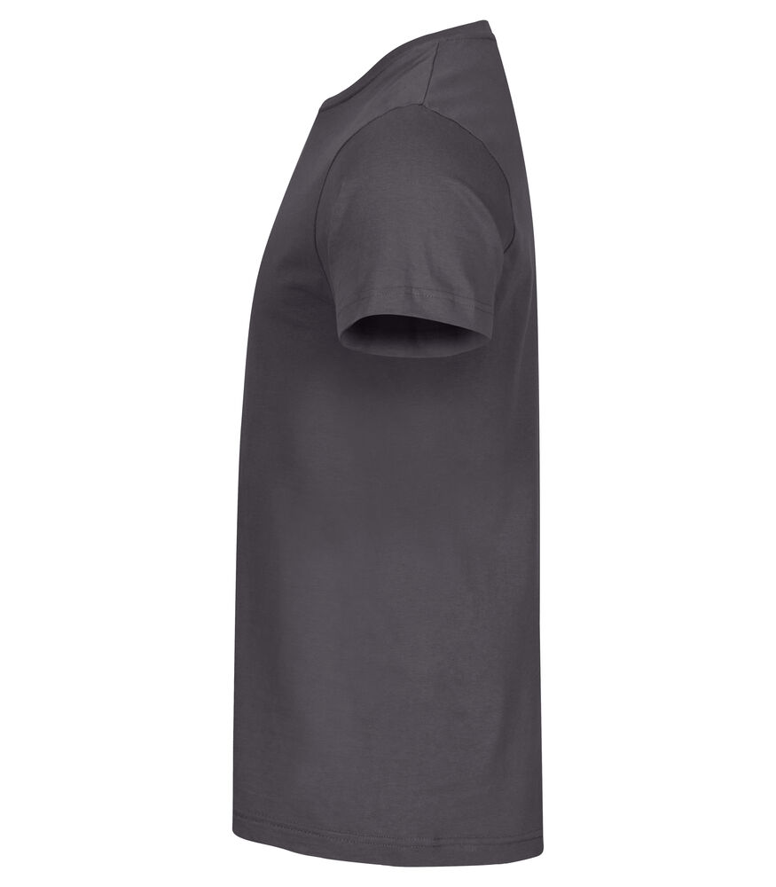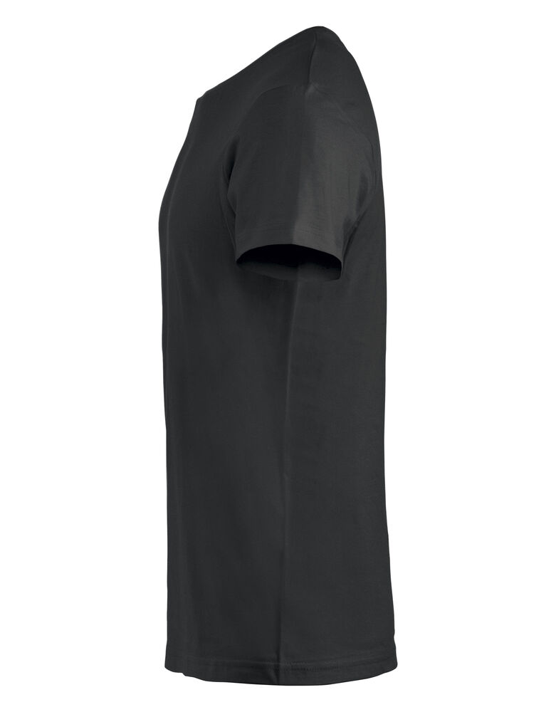 Basic t-shirt i en smalere passform, bånd i nakke, elastan i halsribb og forsterkede sømmer på skuldre. Rundstrikket herremodell og sidesømmer på damemodell.