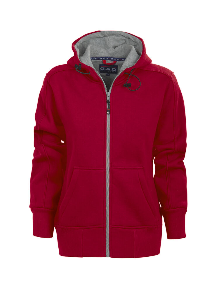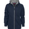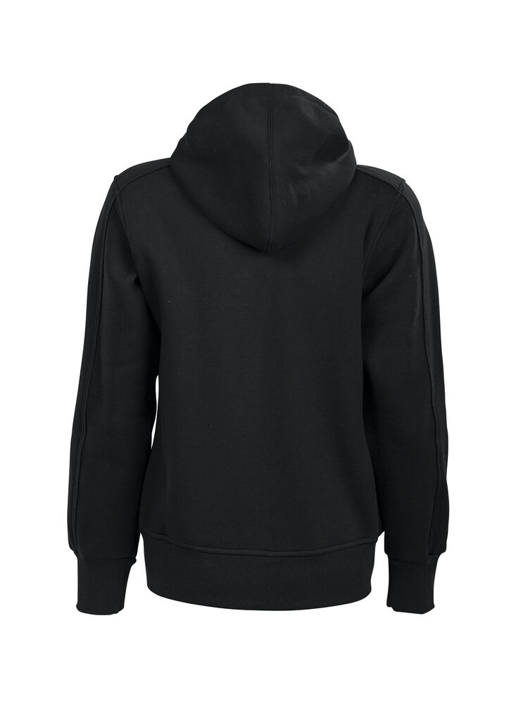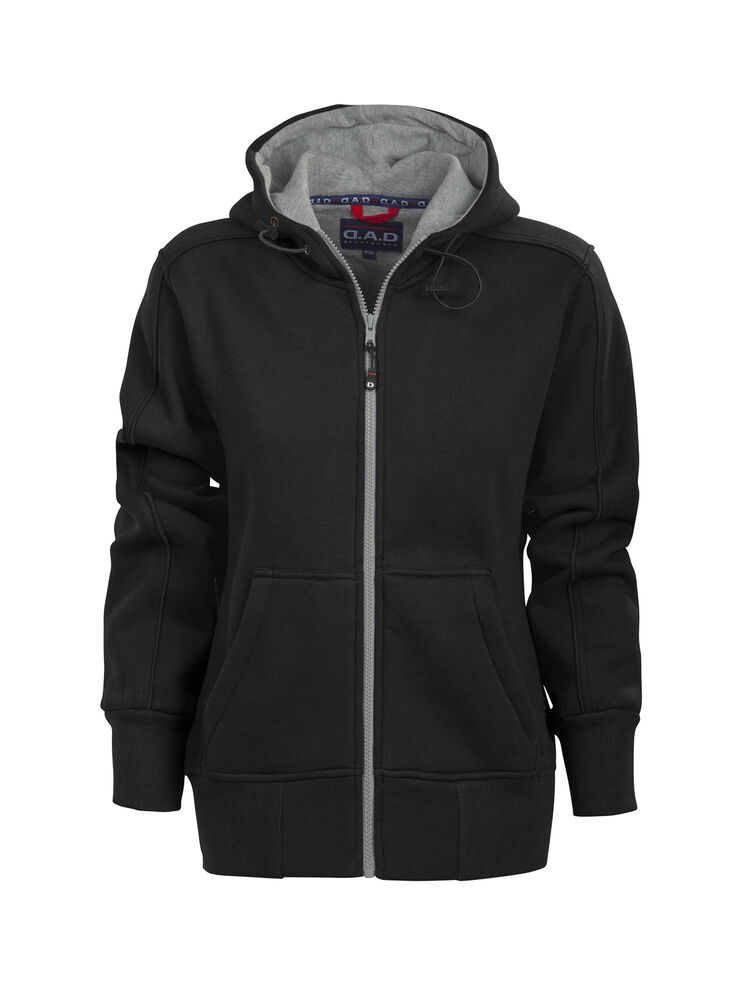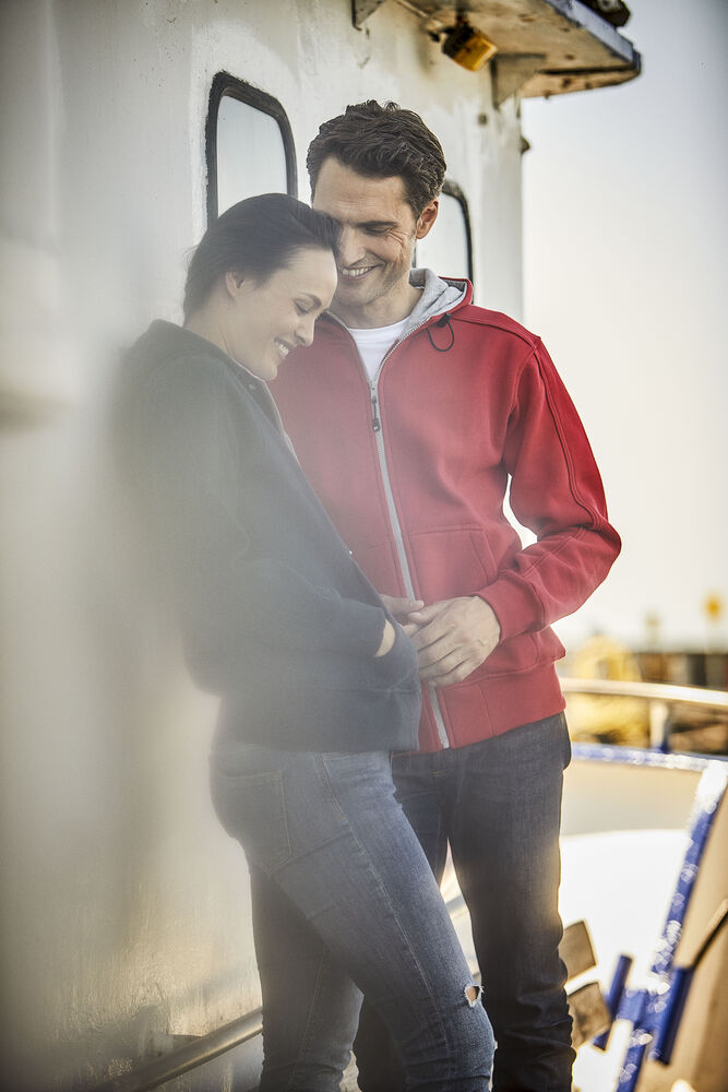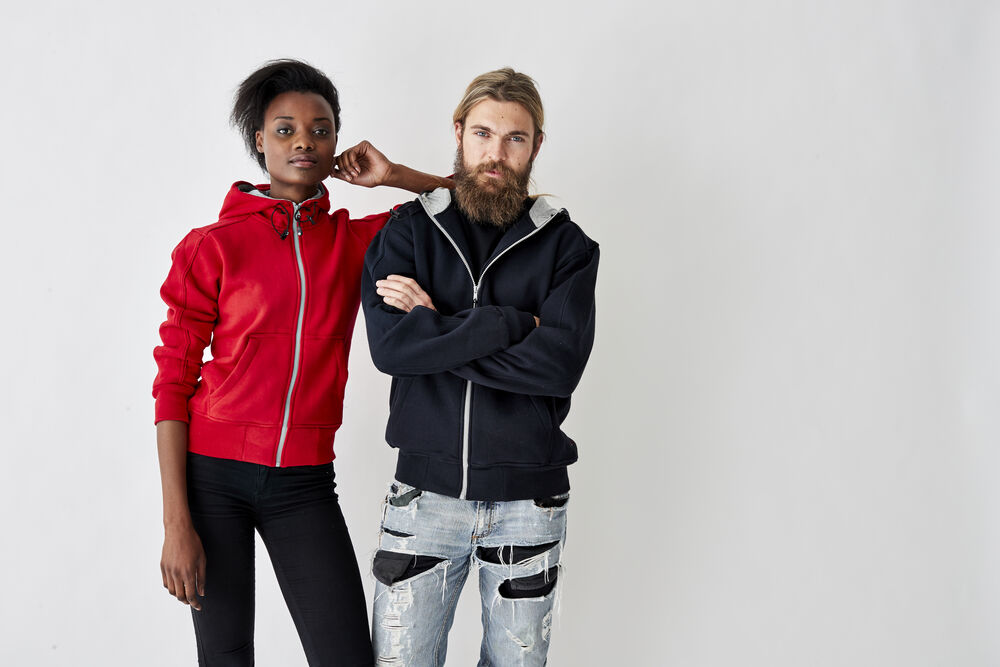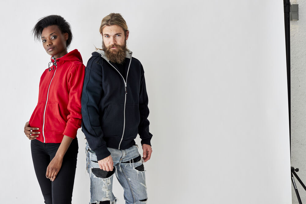 Tøff hettejakke med detaljer og kontrastfarget singlejersey i hetten. Ribbestrikket i nederkant og i ermavslutning. Elastisk snor i hetten. Finnes i dame- og herremodell.