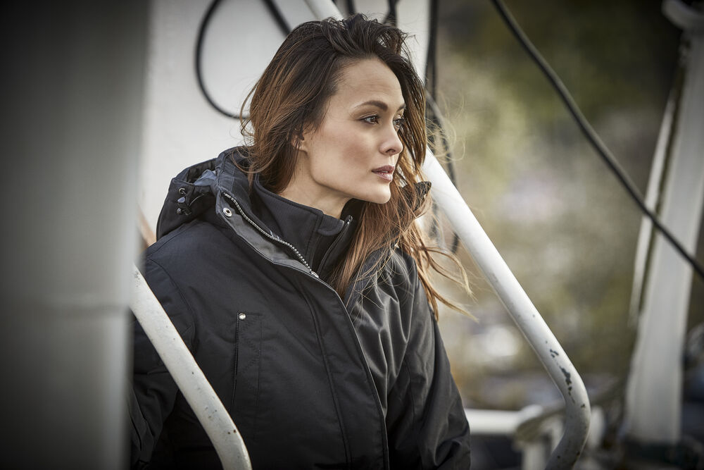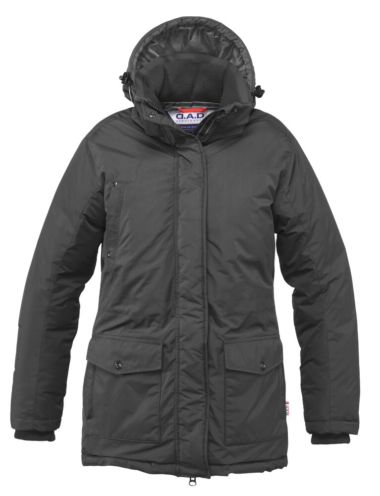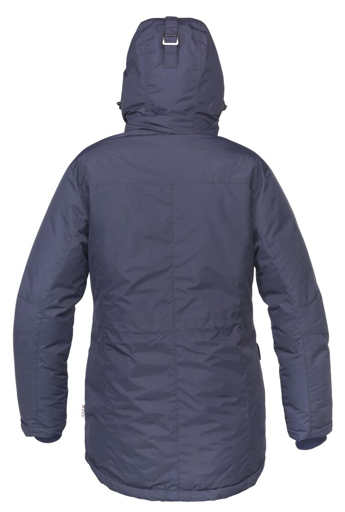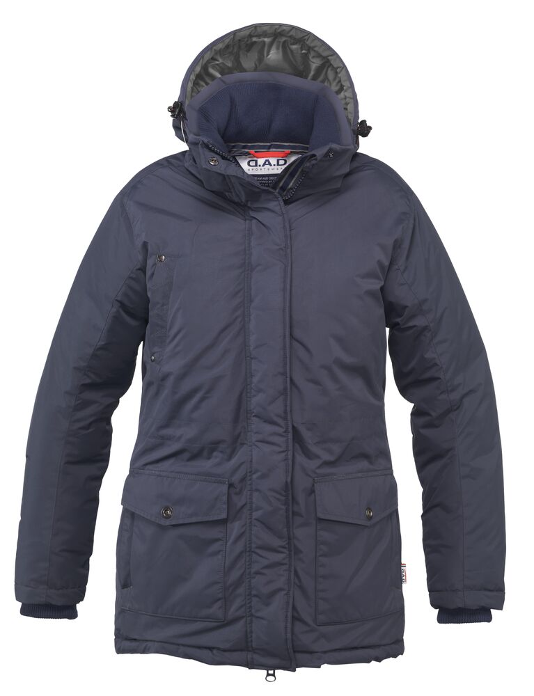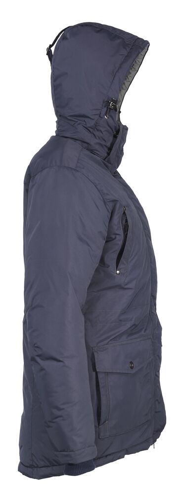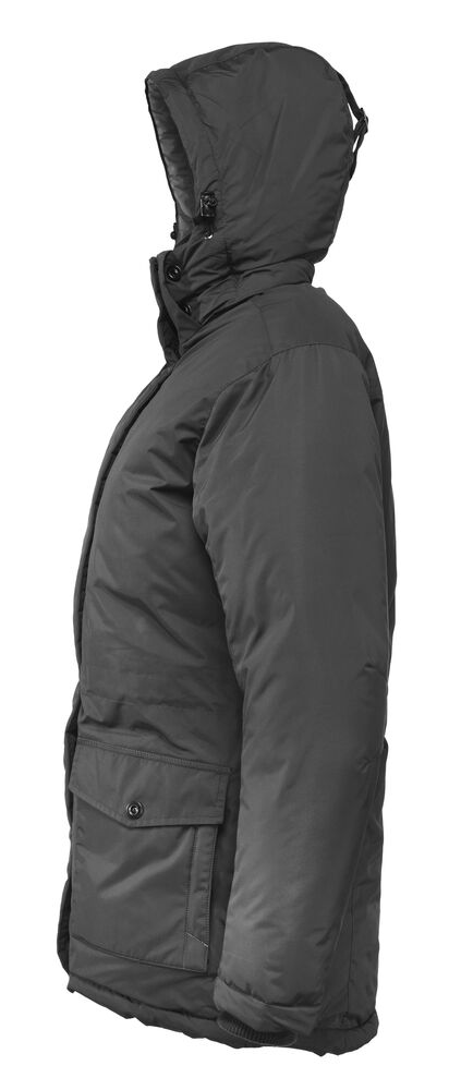 Sportslig parkasmodell i vind- og vannavvisende materiale (WP 3000/MVP 3000). Helfôret med forlenget rygg og snor i midjen. Mansjetter på ermene og på innsiden av kragen for god komfort. Knappestolpe med trykknapper samt kraftig glidelås i front og på brystlomme. To lommer i front, to lommer på innsiden og avtagbar og justerbar hette.