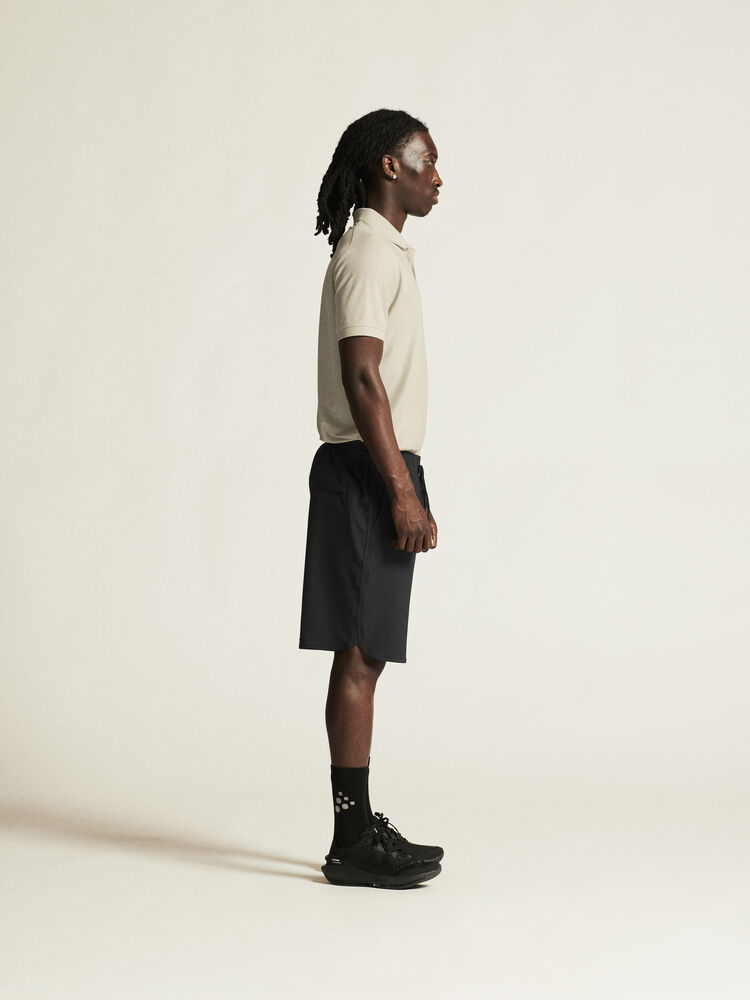 Disse uformelle shortsene er laget av et vevd polyesterstoff med god stretch og en jacquardstrukturert overflate, som gir komfort, ytelse og stil i like stor grad. Elastisk linning med justerbar snøring sikrer en perfekt passform, mens to sidelommer og en baklomme med glidelås gir praktisk oppbevaring. En manifestasjon av håndverk i hver detalj.
