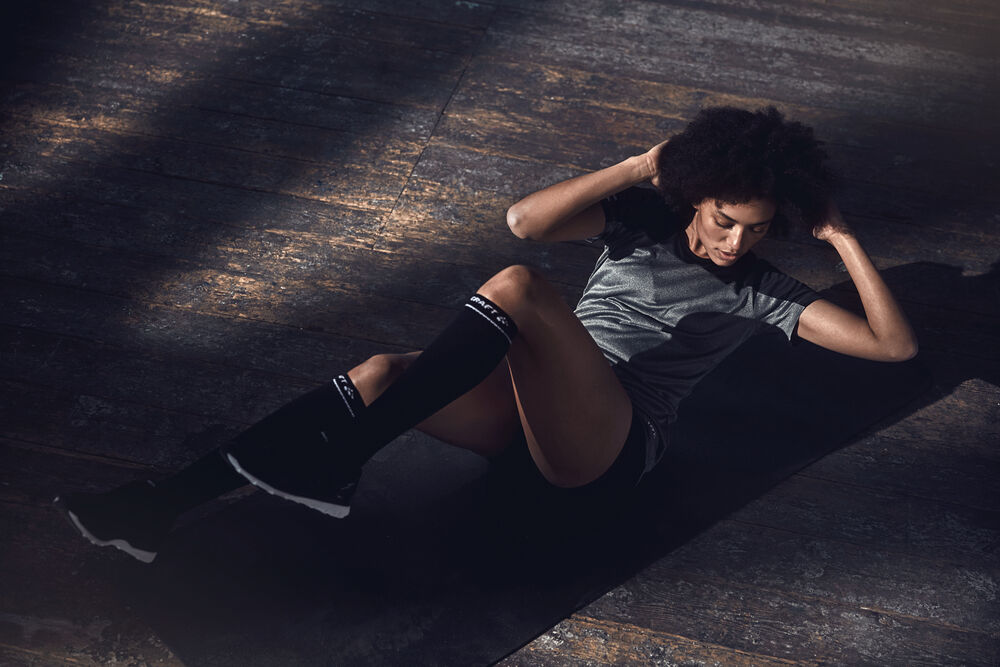 Teknisk avansert kompresjonssokk som reduserer muskelvibrasjoner, fokuserer på muskelkraften og gir støtte ved intensiv trening.
