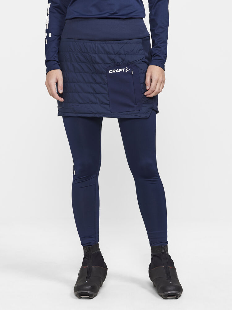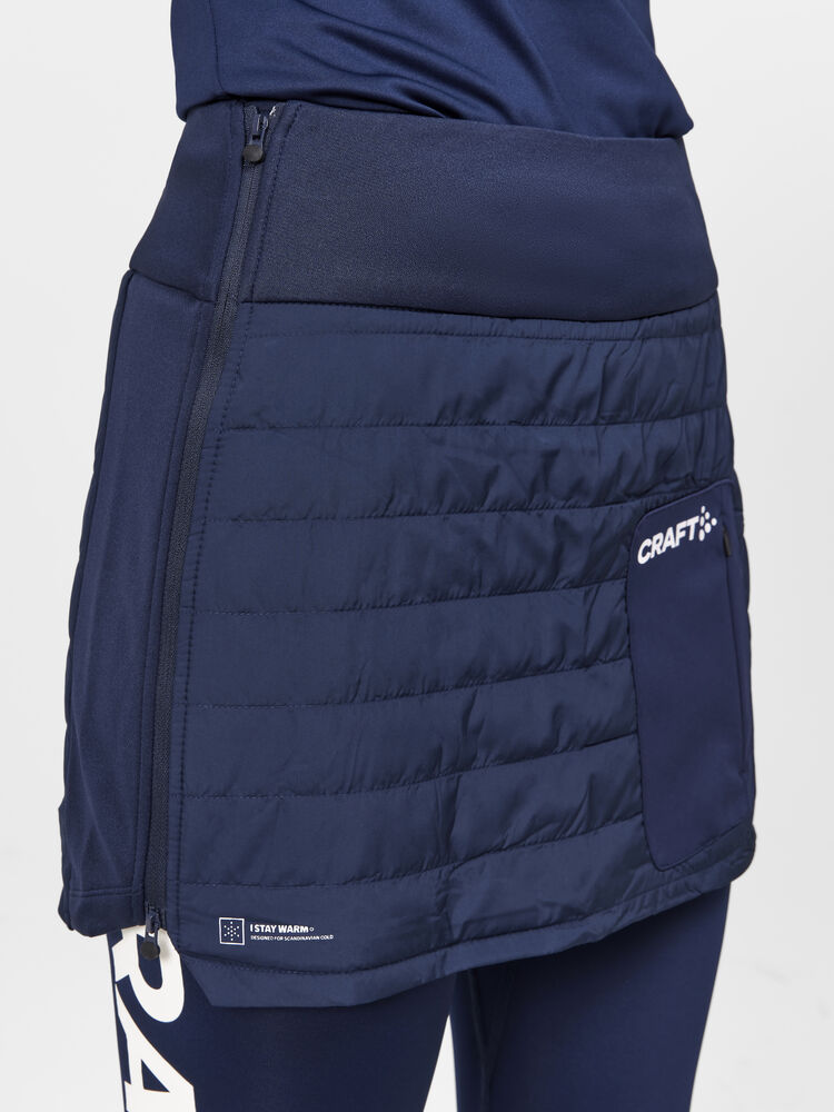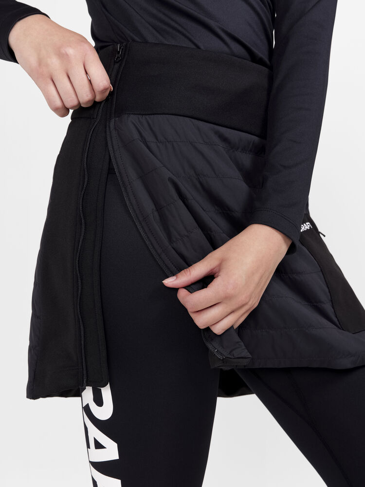 CORE Nordic Club Skirt er et varm, tynt vattert skjørt for trening i kalde forhold. Skjørtet er kviltet og vattert foran og bak, og har børstet trikot i sidene for ekstra bevegelsesfrihet. Skjørtet har også en bred snor i midjen som gir optimal passform og komfort, samt 2-veis glidelås i sidene som gjør det enkelt å ta av og på.