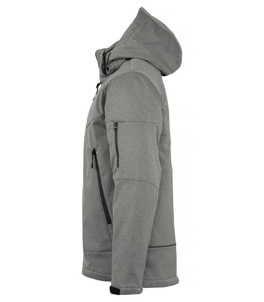 Komfortabel og moderne vattert softshelljakke. Jakken har en avtagbar og justerbar hette, formede ermer for enkel bevegelse, svart fôr, fire ytterlommer med vanntette glidelåser, én innerlomme en glidelås og én innerlomme av mesh. Jakken har også justerbare mansjetter med borrelås og reflekterende detaljer på ryggen. Kommer med broderingslomme.