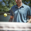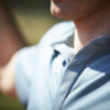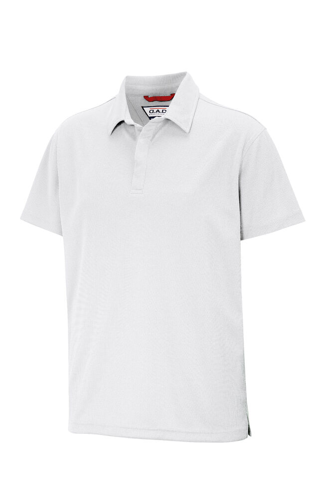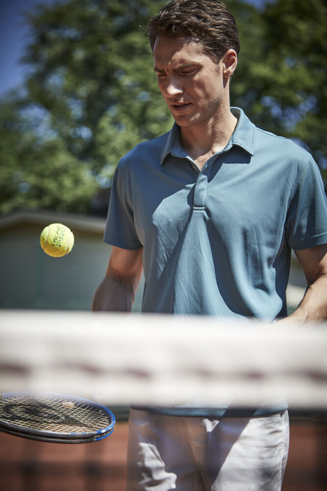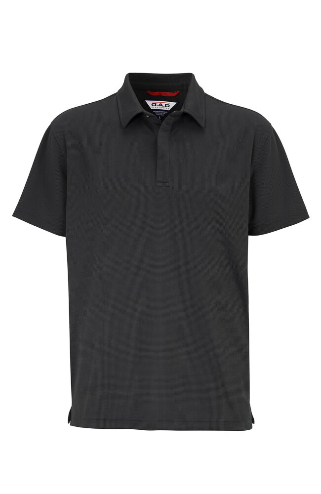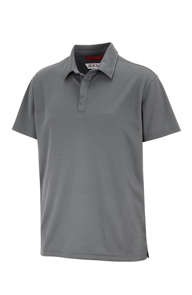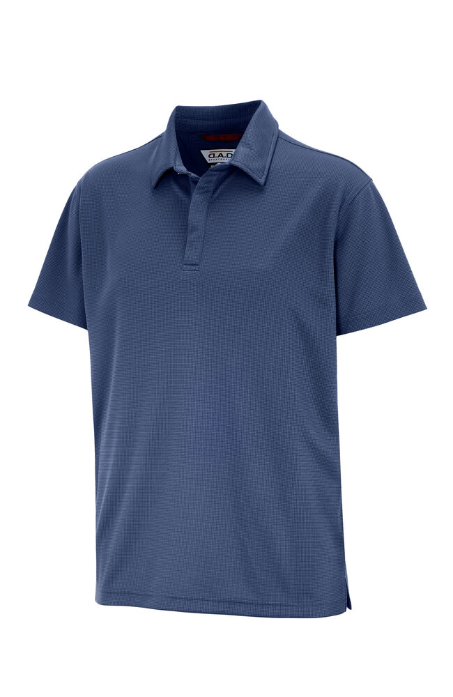 Myk funksjonell polo i et glatt materiale med en struktur som gir et levende uttrykk.