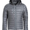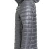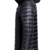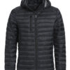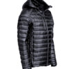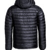 Moderne jakke i fuskedun. Avtagbar hette og tre utvendige lommer med glidelås. To innvendige lommer. Tilpasset for hodetelefoner.