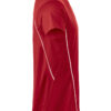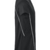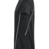 Unisex T-shirt i polyester, lett avrundet i nederkant, bånd i nakkesøm, ingen sidesømmer. Kontrast piping på sidene og overlock sømmer i kontrastfarge på skuldrene.