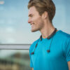 T-shirt i pustende materiale med sidesømmer og konstrastbånd på skuldrene.