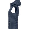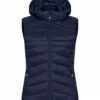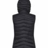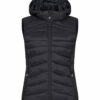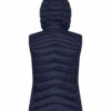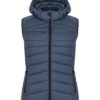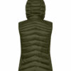 En varm, men likevel lett vest med dunlignende vattering. Laget av 100 % resirkulert polyamid. Tre utvendige lommer med glidelås, og to innerlommer. Elastisk teip i nederkant og ved ermåpningene. Damevesten kommer med avtagbar hette. Leveres med farget stropp (til oppheng), øretelefonløsning og glidelåstrekkere.