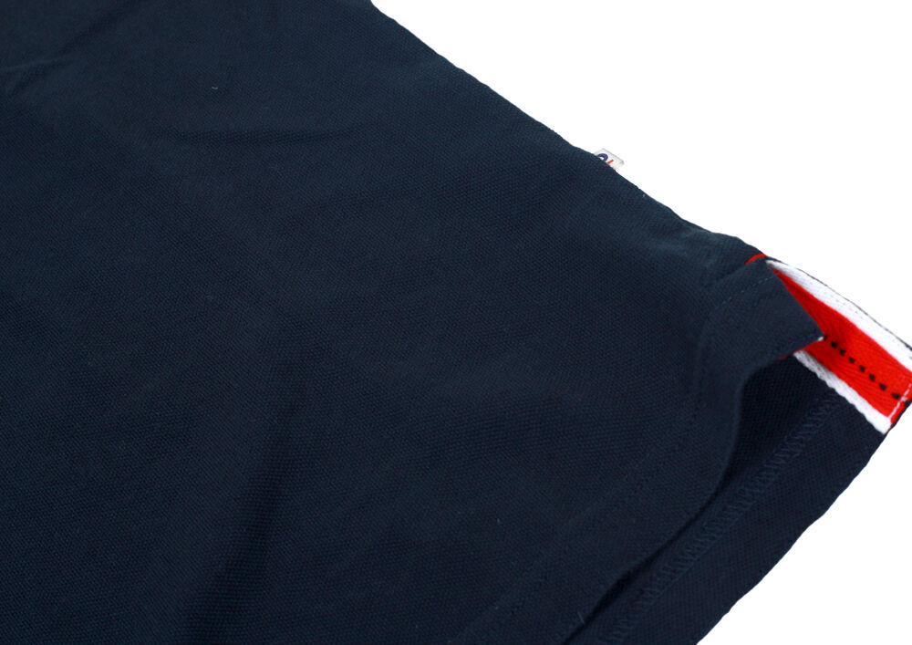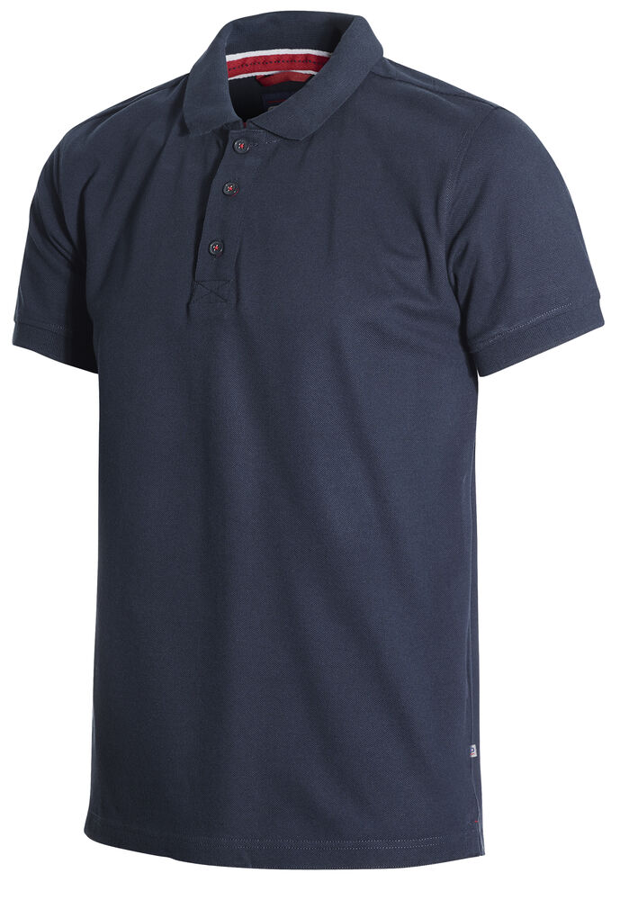 Velarbeidet pique med kontrastfargede detaljer. Dekorativ strikk på skulderpartiet. Kraftig dobbeltstrikket krage og matchende dekorbånd på innsiden.