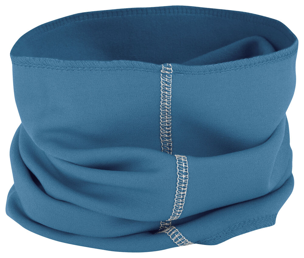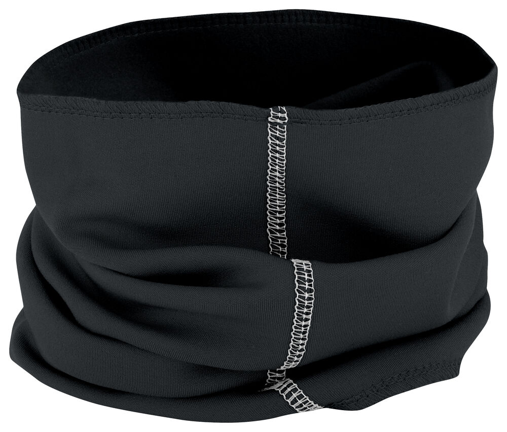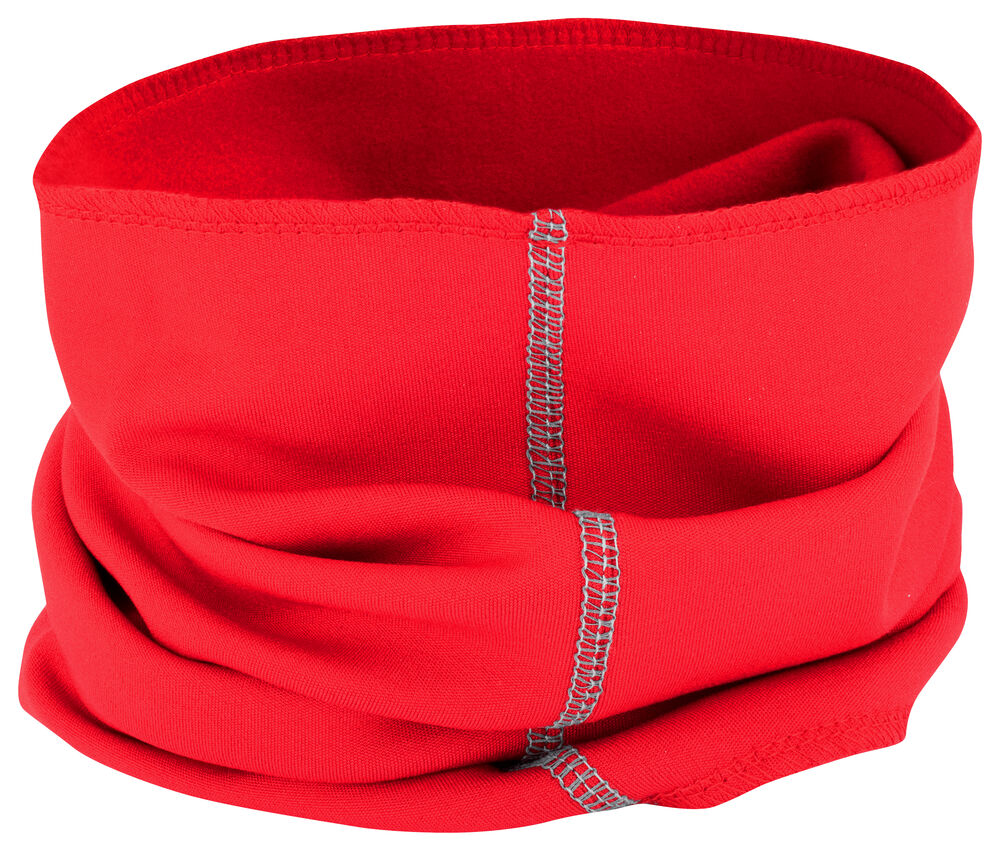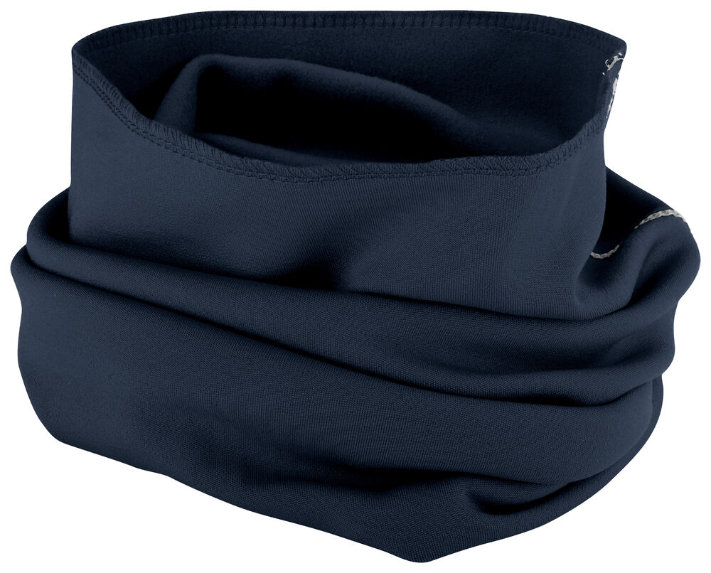 Allsidig hals i elastisk fleece. En reflekterende flatlocksøm.