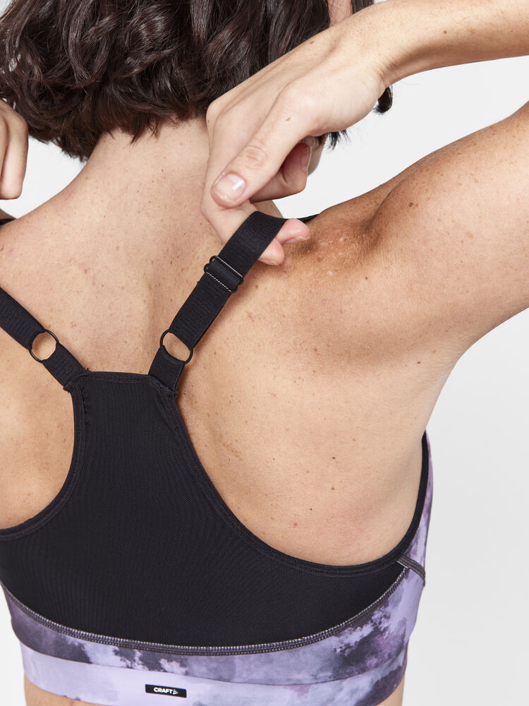 Motion bra er en polstret sports-bh med tettsittende passform, som sikrer maksimal komfort under økter av middels- til høy intensitet. Laget av stoff som gir effektiv fuktighetstransport for å holde deg fresh gjennom hele treningsøkten. Justerbare skulderstropper for en personlig optimal fit.