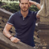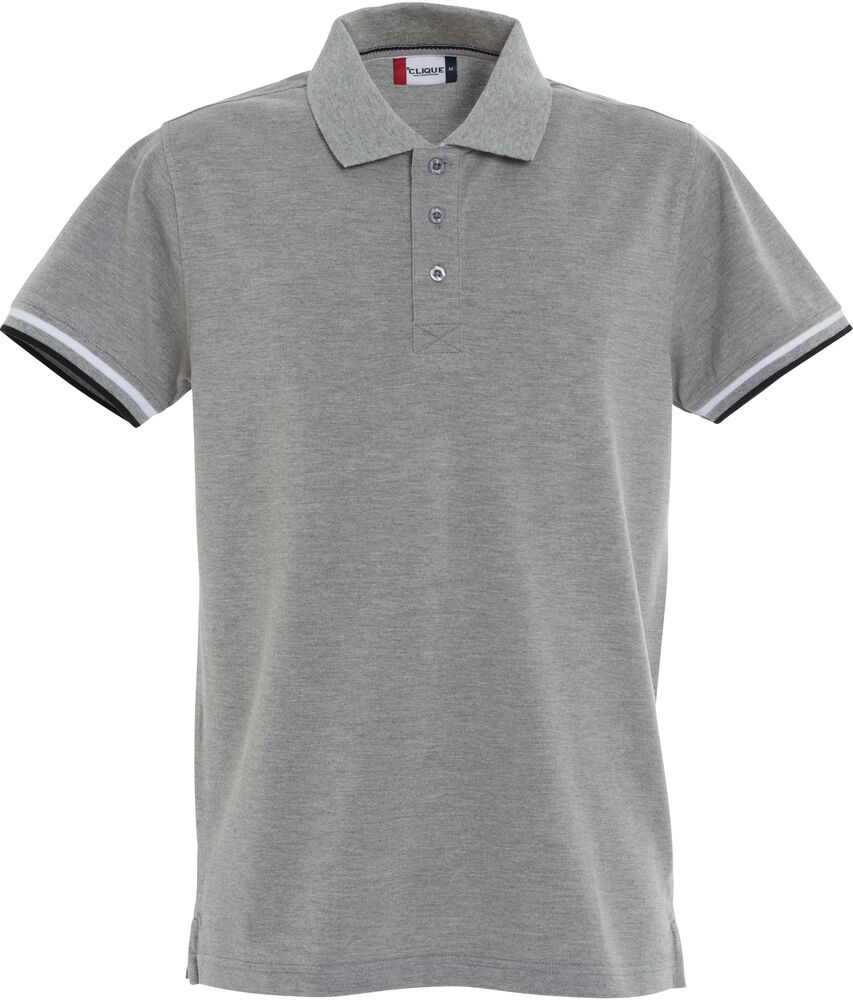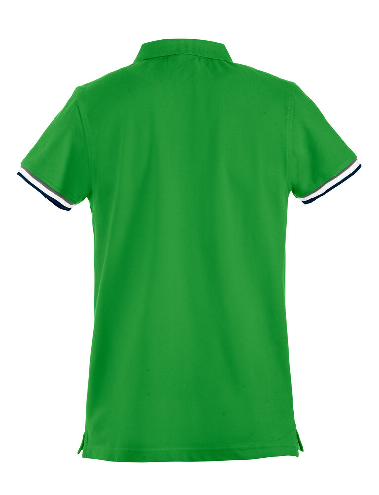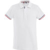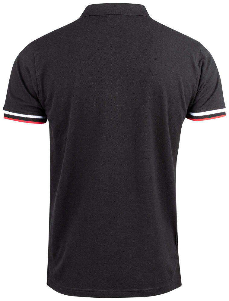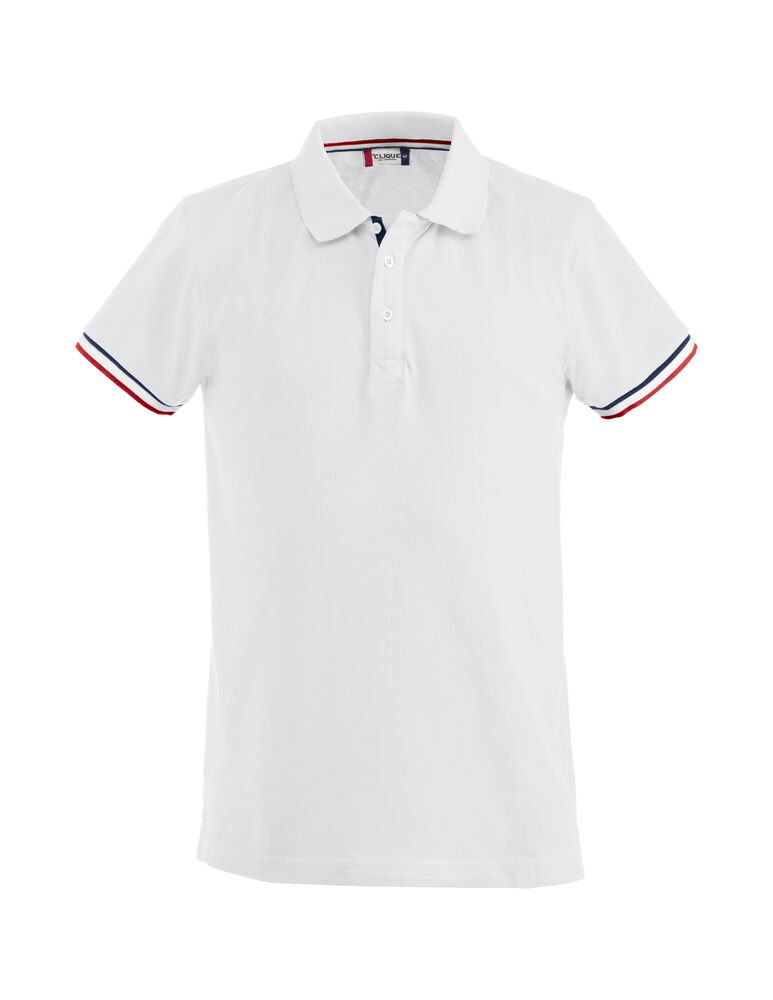 Fin og trendy bomullspique med trefarget kontrast på krage, nakkebånd og splitt.