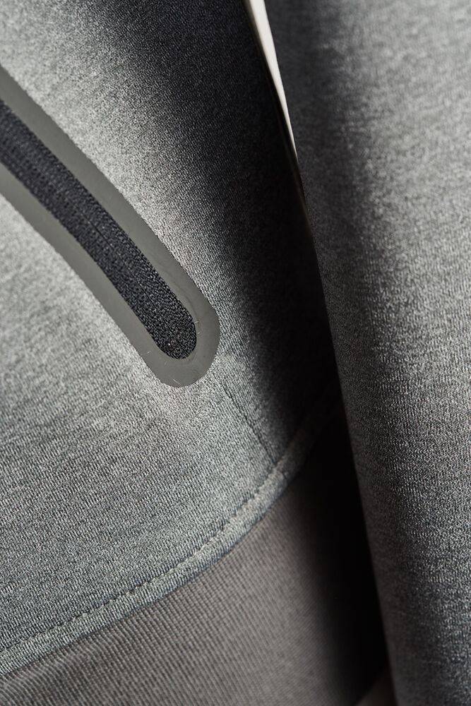Myk hettejakke i et lett børstet jerseymateriale utstyt med teipede sidelommer og glidelås.