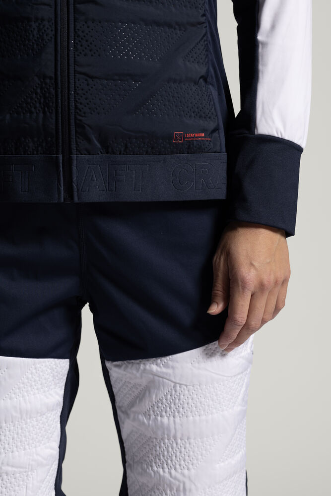 Langrennsjakken har et vind- og vanntett stoff med superlett vattering i front, og børstet jerseystoff bak og under ermene for effektiv kroppstemperaturkontroll. I tillegg er fronten fôret med fukttransporterende grid fleece som gir ekstra isolasjon og funksjon. Et godt valg for høyintensive treningsøkter på kalde vinterdager.