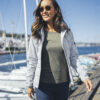 Oak Harbor er designet som en hoodie men gir like bra varmebeskyttelse som en jakke. Ermer og sidepaneler er i stretchfullt mykt polyestermateriale med fleeceinnside. Jakken er quiltet og vattert både i front og på baksiden med Sustans® i gjenvunnet materiale fra DuPont™ Sorona®. Damejakken har hette og herrejakken har en krage. Låsbare glidelåser i front og i sidelommer.