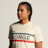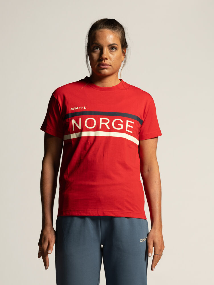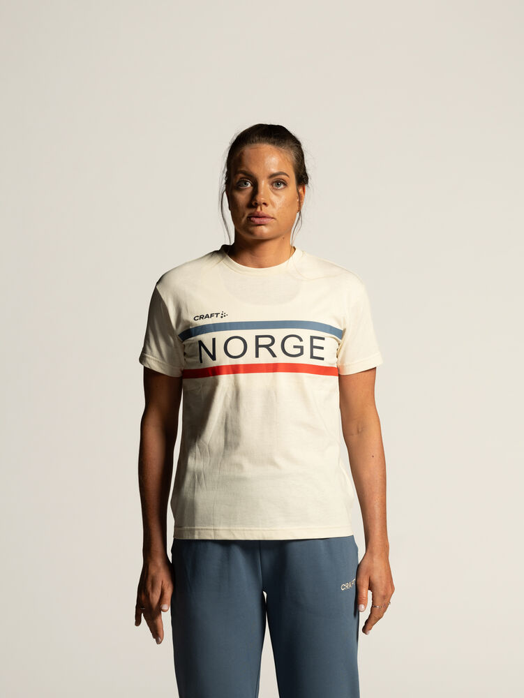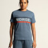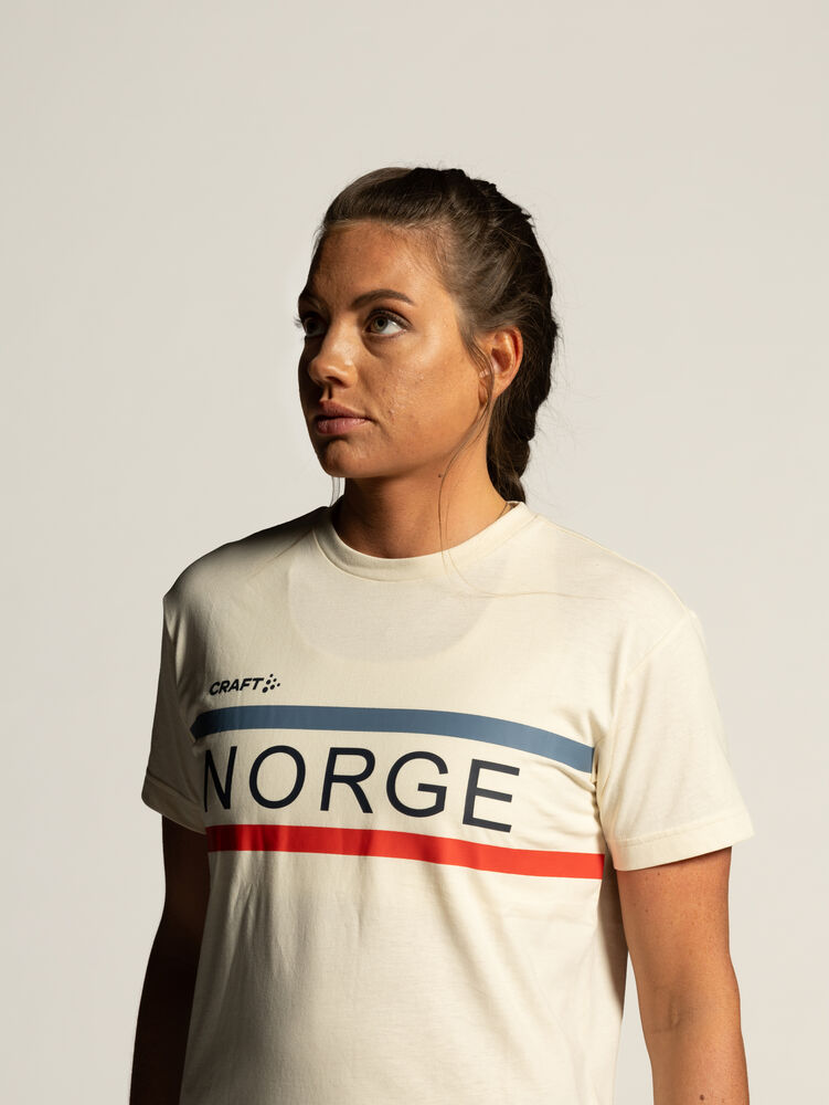 OL Norway Community 2.0 Tee er en svært komfortabel t-skjorte, som er utformet for hverdagslige aktiviteter. Dette allsidige plagget er laget av en myk blanding av økologisk bomull og resirkulert polyester, som skaper en myk følelse og effektiv transport av fukt. T-skjorten har et stilrent design.