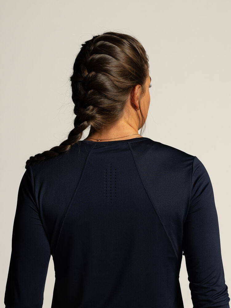 OL Norway Essence LS Tee 2 er en langermet trenings-t-skjorte som passer for de fleste typer høyintensive aktiviteter. T-skjorten er laget av et mykt, elastisk materiale av resirkulert polyester og elastan, og har meshpaneler og perforerte detaljer som sørger for effektiv ventilasjon. Dette svært funksjonelle treningsplagget har også et ergonomisk design som gir optimal passform, bevegelsesfrihet og komfort.