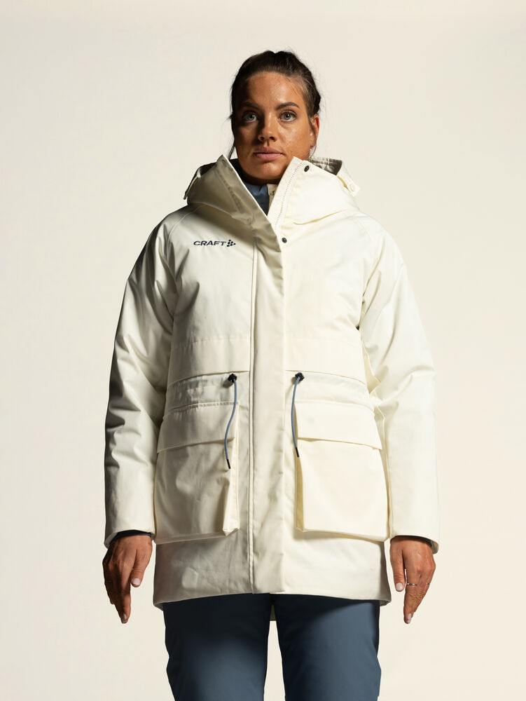 Denne stilige parkasen for kaldt vær er laget av et vannavvisende og slitesterkt materiale og har en polyesterisolasjon som holder deg varm og tørr på våte høst- og vinterdager. I tillegg har parkasen teipede sømmer på kritiske steder, to romslige lommer foran, justerbar hette og justerbar midje for optimal passform og silhuett. En lengre passform gir ekstra beskyttelse.