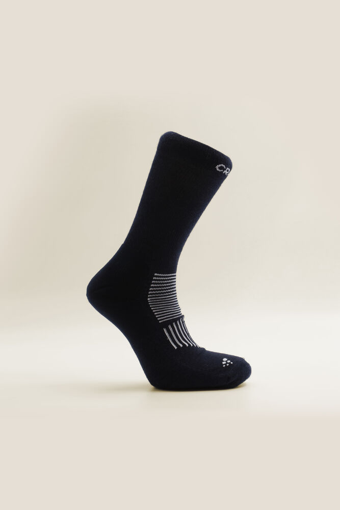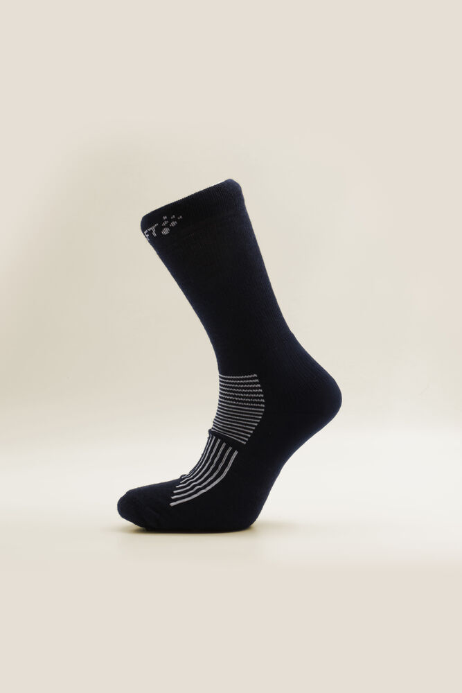 OL Norway Ski Sock er en varm og slitesterk sokk designet for intensive langrennsturer i kalde forhold. Sokken er laget av merinoull, polyamid og elastan og har varmende frotté under foten, og strikket ventilerende piquestrikk på overdelen for økt fukttransport. I tillegg kommer sokkene med sømløse tåpartier for optimal komfort og ergonomisk venstre- og høyre-passform.