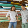 Vår fineste hettegenser i en økologisk bomull og resirkulert polyesterblanding. To lommer i front med YKK-glidelås. Snor i hette med metallavslutning og dekorative flatlocksømmer som gir et moderne utseende. CVC french terry, herringbone nakkebånd og ribb i nedekant og ermavslutning. Elastisk ribb i 1×1. Tilpasset for hodetelefoner.