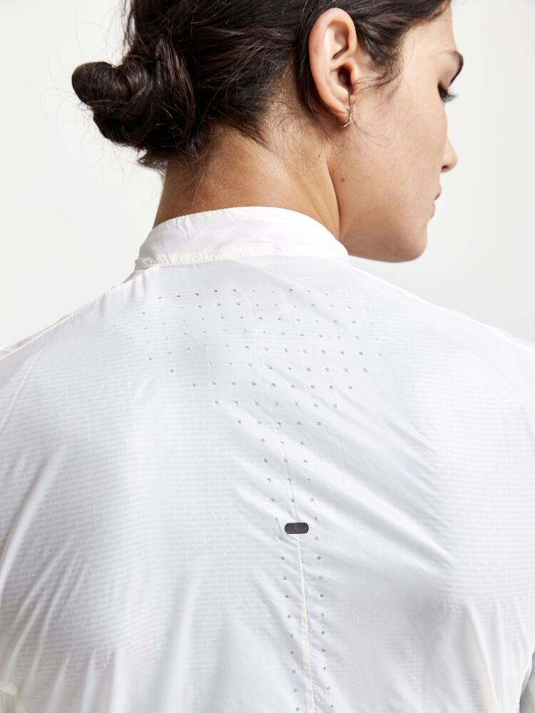 Denne teknologisk avanserte sykkeljakken er laget av eksepsjonelt tynne og lette materialer som både beskytter mot vinden og gir fantastisk ventilasjon og optimal regulering av kroppstemperaturen. Jakken har elastisk mesh-panel i ryggen, samt perforeringer øverst på ryggen som gir ekstra ventilasjon og komfort slik at du kan yte maksimalt på intense økter. Sykkeljakken kan pakken ned i sin egen rygglomme og får enkelt plass i lommen til en sykkeltrøye.