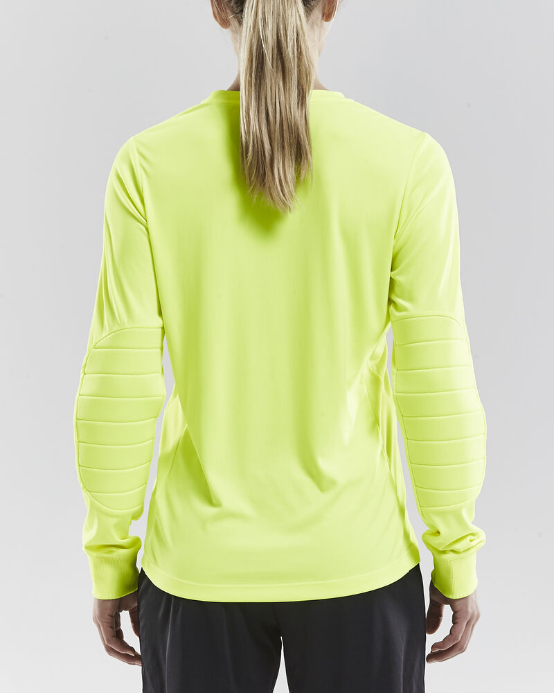 Langarmet keepertrøye produsert av funksjonellt stretchmateriale. Mesh paneler under armene for effektiv regulering av kroppstemperaturen. Ergonomisk design og elastisitet gir komfortabel passform og optimal bevegelsesfrihet. Vattert forsterkning på albuene. Designet til damer.
