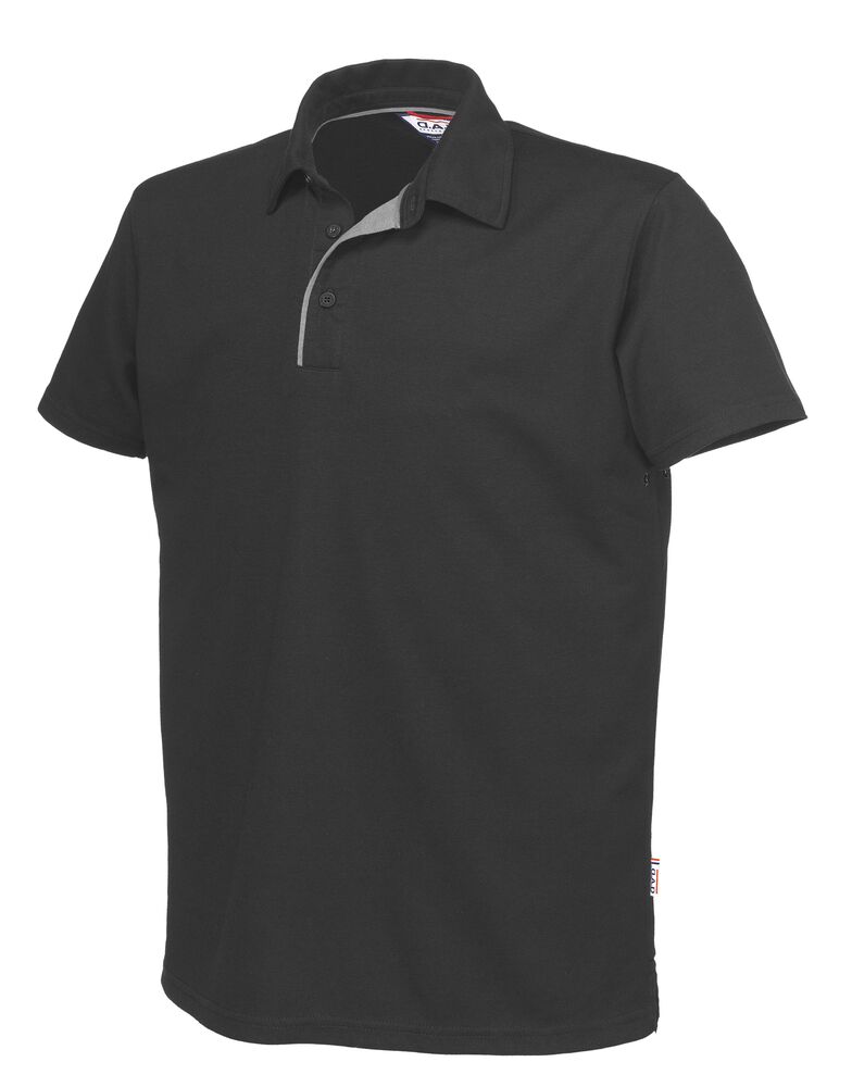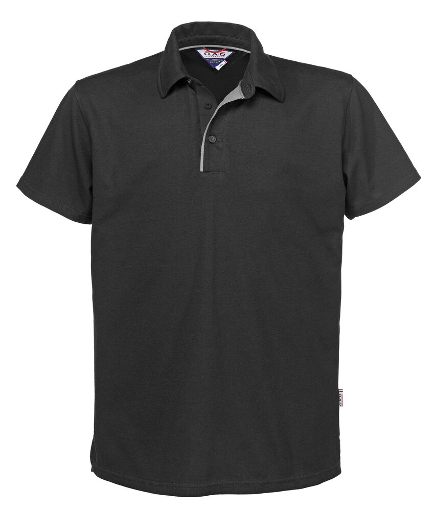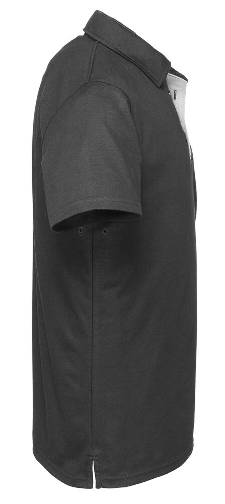 Pique med blandet materiale som har bomullens behagelige følelse på utsiden og Cooldry Polyester på innsiden. Materialet har egenskaper som transportere bort fukt på innsiden. Diskret avvikende farge på innsiden av knappestolpen, dekorbånd i nakke, ståkrage og splitt i nederkant.