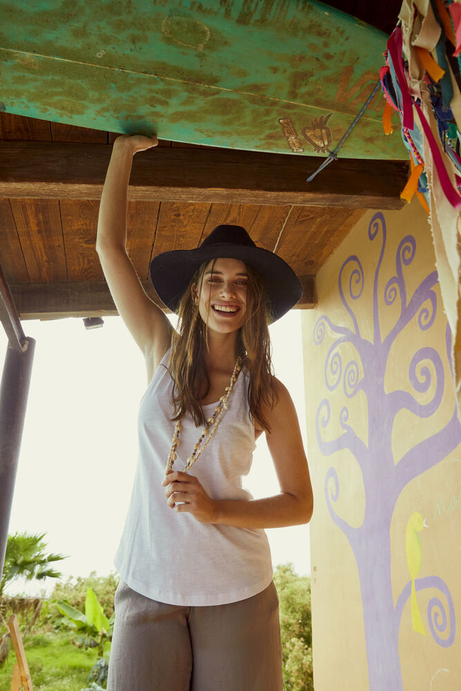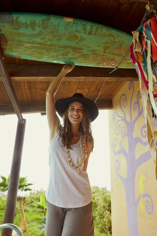 Moderne tanktop i 100 % Slub ringspunnet jerseybomull. Laget med sidesømmer og en liten åpning i nakken. Avtagbar etikett i nakken. Plagget er forhåndskrympet og enzymbehandlet.