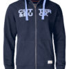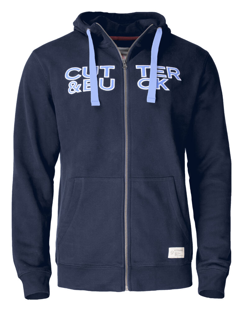 Klassisk hettejakke i kraftig kvalitet. Glidelås i metall og kenguru lomme i front. Fôr inne i hetten og snorer i kontrastfarge. Fargene navy og burgunder leveres med Cutter & Buck logo brodert i front. Ribb i nederkant.